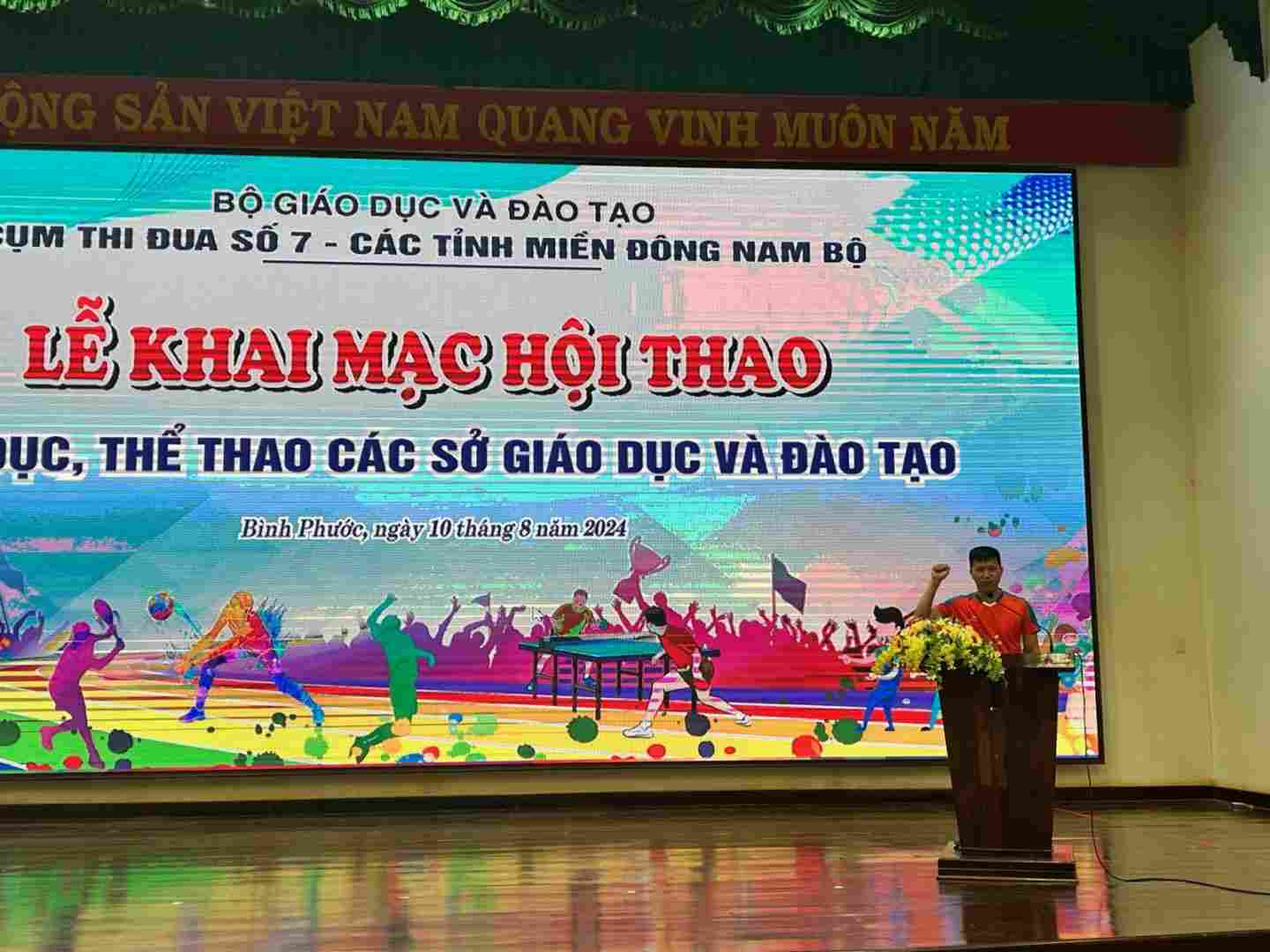 Phát biểu tại Lễ khai mạc, Nhà giáo ưu tú Lý Thanh Tâm – Giám đốc Sở GD&ĐT tỉnh Bình Phước, Trưởng Ban Tổ chức Hội thao nhấn mạnh “Hội thao được tổ chức nhằm thực hiện phong trào thi đua rèn luyện sức khoẻ theo gương Bác Hồ vĩ đại; là dịp để cán bộ, công chức ngành Giáo dục tăng cường tình đoàn kết và mối quan hệ phối hợp giữa các địa phương. Hội thao lần này sẽ là ngày Hội của tinh thần thể thao cao thượng, sự đoàn kết, ý chí quyết tâm cao và nỗ lực của các Sở GD&ĐT trong Cụm thi đua số 7, góp phần rèn luyện và nâng cao tinh thần, thể lực của cán bộ, công chức, nhằm phục vụ tốt hơn cho công tác chuyên môn và đưa sự nghiệp giáo dục của khu vực ngày một phát triển vươn lên…”